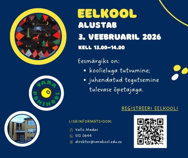Vara Põhikooli eelkool alustab 3. veebruarist 2026 kell 13.00-14.00.